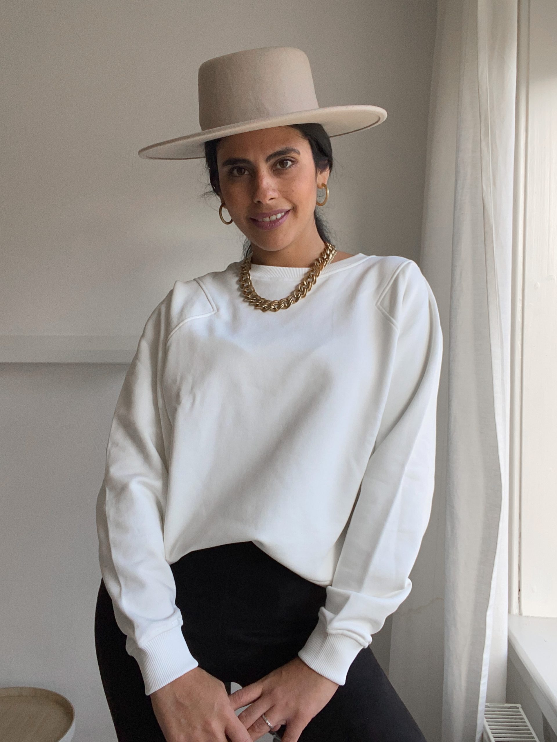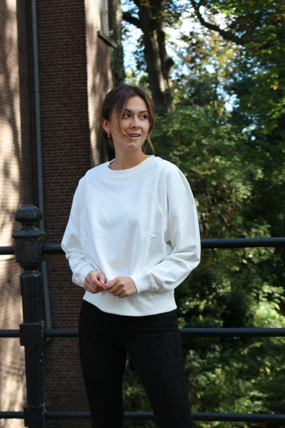 Sweater Hazel is een heerlijke zachte trui gemaakt van een stevige kwaliteit biokatoen. Het ecru staat zacht in je gezicht en is een tijdloze kleur. Bekijk ook in het zwart en in het groen!